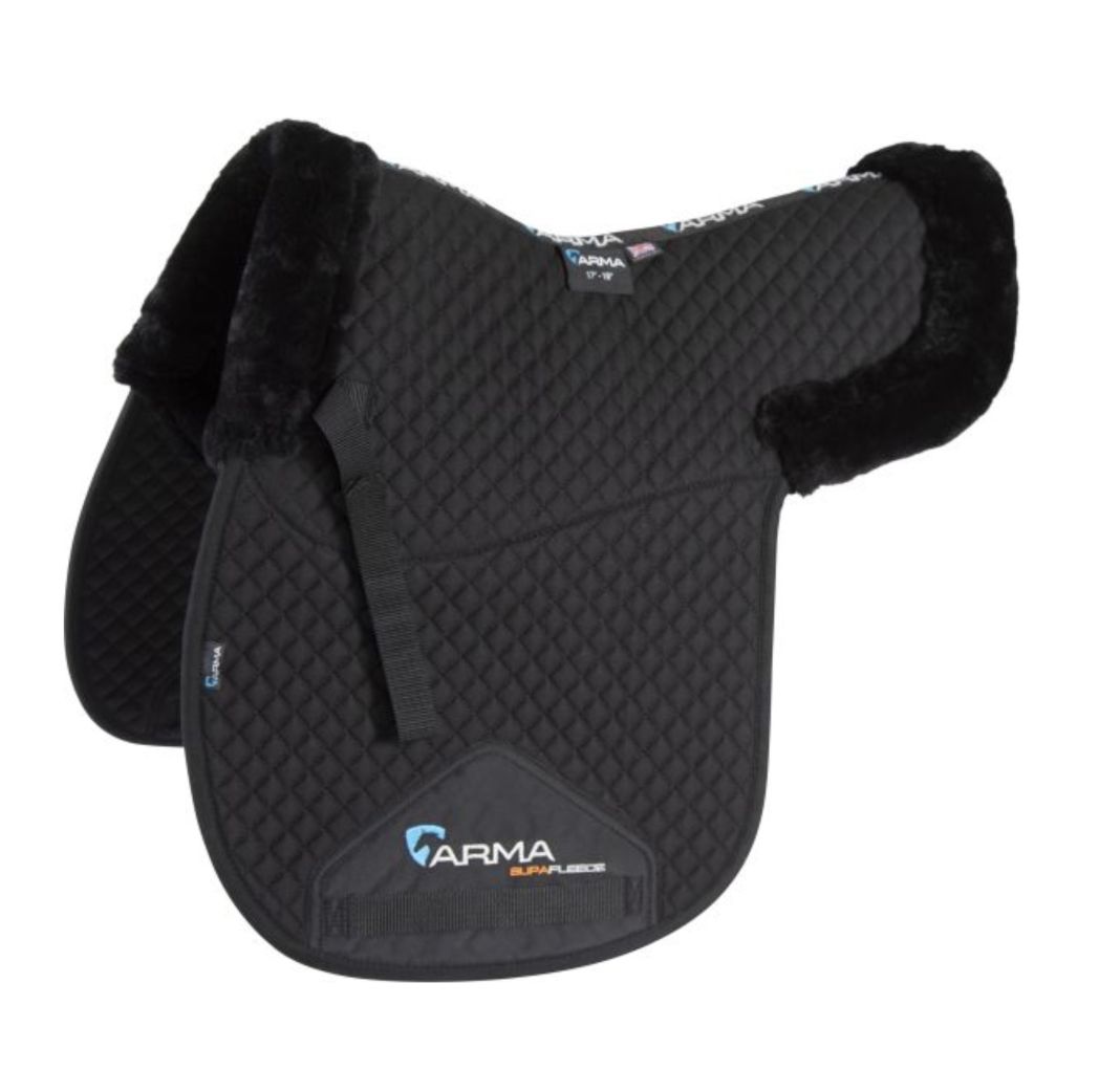 Treat your horse to the luxury of the ARMA SupaFleece numnah, half lined and edged with synthetic sheepskin to protect against shock and chafing. It offers excellent airflow, moisture control, and pressure relief, with secure straps and easy machine washing.