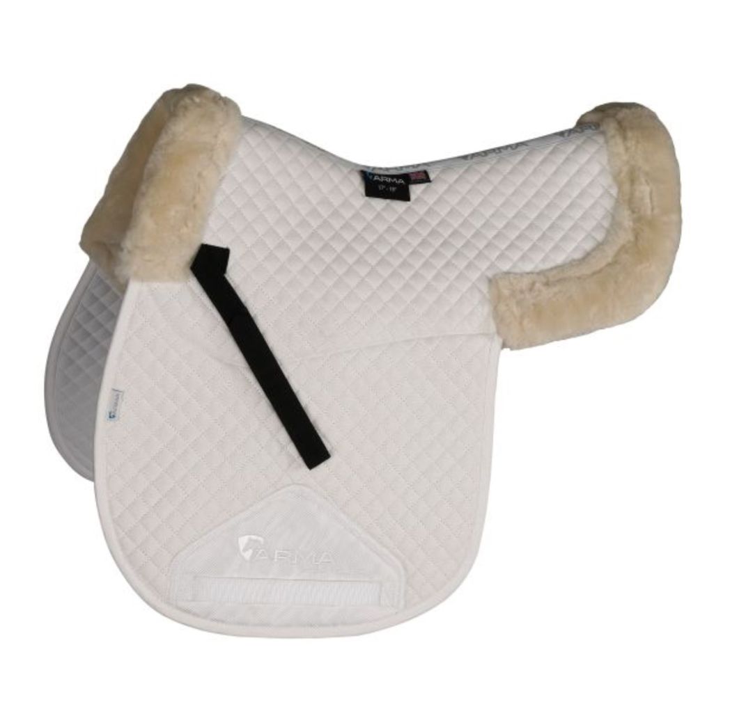 Treat your horse to this luxury ARMA SupaFleece numnah. Half lined and edged with synthetic sheepskin fur to protect against shock, sores and chafing.