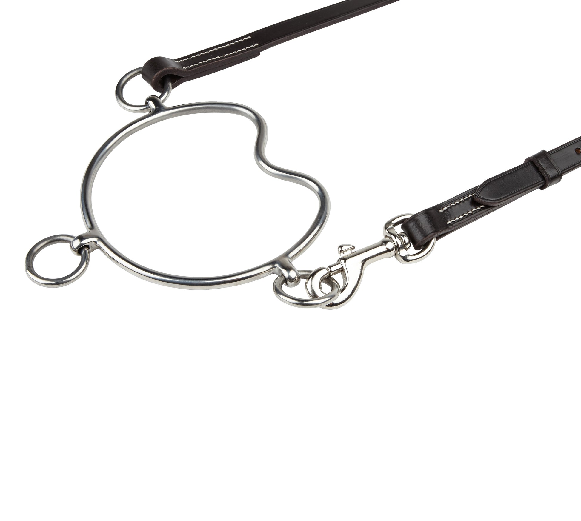 Full-size leather slip head with buckle or optional trigger clip, designed for use with Chifney bits—bespoke sizes available on request.