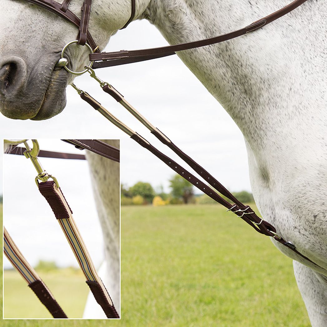 The Harbridge is a versatile training aid that encourages correct head carriage and muscle development without harsh contact, ideal for flatwork and jumping exercises.