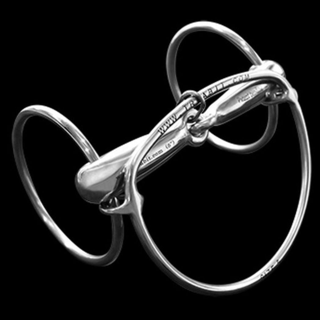This modified Triabit uses a 5” hollow steel snaffle to offer improved comfort without compromising control. Its design prevents pulling on the mouth’s sides, reduces tongue and jaw pressure, and encourages relaxation and easier breathing for the horse.